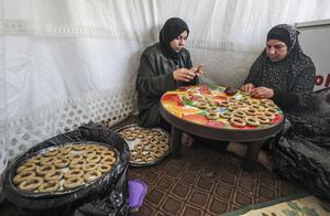 (250328) -- GAZA, 28 marzo, 2025 (Xinhua) -- Imagen del 27 de marzo de 2025 de mujeres palestinas preparando comida...