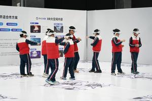 (250328) -- BEIJING, 28 marzo, 2025 (Xinhua) -- Estudiantes experimentan dispositivos de realidad virtual durante la Convención de Ciencia Ficción...