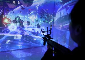 (250328) -- BEIJING, 28 marzo, 2025 (Xinhua) -- Un visitante experimenta un juego interactivo de realidad extendida durante la Convención...