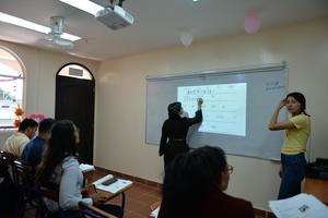 (250328) -- MANAGUA, 28 marzo, 2025 (Xinhua) -- Imagen del 21 de marzo de 2025 de una alumna participando en...