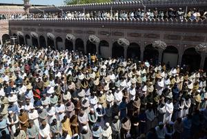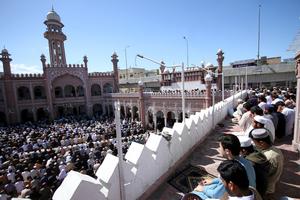 (250328) -- PESHAWAR, 28 marzo, 2025 (Xinhua) -- Personas participan en las oraciones del último viernes del Ramadán, en Peshawar,...