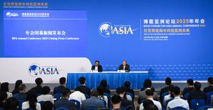 (250328) -- BOAO, 28 marzo, 2025 (Xinhua) -- Imagen del 28 de marzo de 2025 de la conferencia de prensa...