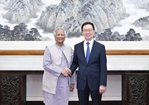 (250328) -- BEIJING, 28 marzo, 2025 (Xinhua) -- El vicepresidente chino, Han Zheng, se reúne con el consejero principal del...