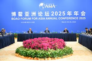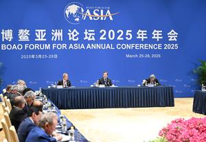 (250328) -- BOAO, 28 marzo, 2025 (Xinhua) -- El vice primer ministro chino Ding Xuexiang, también miembro del Comité Permanente...