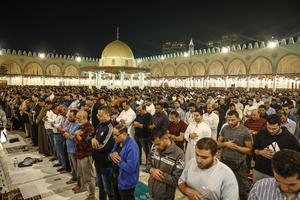 (250328) -- EL CAIRO, 28 marzo, 2025 (Xinhua) -- Imagen del 26 de marzo de 2025 de musulmanes asistiendo a...