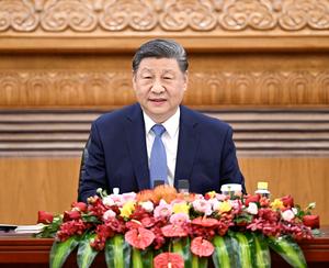 (250328) -- BEIJING, 28 marzo, 2025 (Xinhua) -- El presidente chino, Xi Jinping, se reúne con representantes de la comunidad...