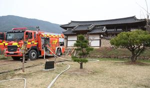 (250328) -- ANDONG, 28 marzo, 2025 (Xinhua) -- Camiones de bomberos están a la espera en la Academia Confuciana Byeongsan...