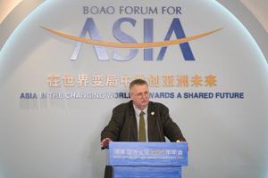 (250328) -- BOAO, 28 marzo, 2025 (Xinhua) -- El viceprimer ministro ruso, Alexey Overchuk, pronuncia un discurso inaugural en un...