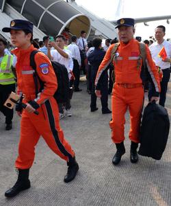 (250329) -- YANGON, 29 marzo, 2025 (Xinhua) -- Un equipo de rescate chino llega al Aeropuerto Internacional de Yangón, en...