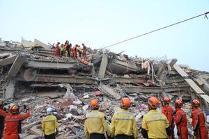 (250331) -- MANDALAY, 31 marzo, 2025 (Xinhua) -- Miembros del Equipo de Búsqueda y Rescate de China y una unidad...
