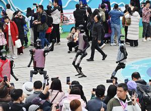 (250331) -- NANNING, 31 marzo, 2025 (Xinhua) -- Robots bailan durante la ceremonia de apertura de un carnaval, en Nanning,...