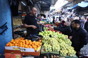 (250330) -- JERUSALEN, 30 marzo, 2025 (Xinhua) -- Imagen del 29 de marzo de 2025 de personas realizando compras para...