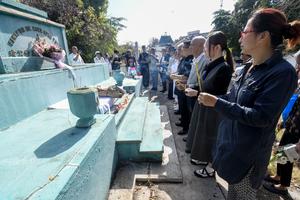 (250330) -- LA HABANA, 30 marzo, 2025 (Xinhua) -- Miembros de la comunidad china en Cuba rinden homenaje a sus...