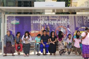 (250330) -- YANGON, 30 marzo, 2025 (Xinhua) -- Personas esperan en una estación de autobuses, en Yangón, Myanmar, el 30...