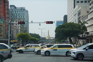 (250330) -- YANGON, 30 marzo, 2025 (Xinhua) -- Automóviles circulan por una calle, en Yangón, Myanmar, el 30 de marzo...