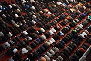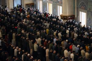 (250330) -- ANKARA, 30 marzo, 2025 (Xinhua) -- Personas oran durante el Eid al-Fitr en la mezquita Kocatepe, en Ankara,...