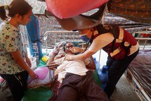 (250331) -- NAY PYI TAW, 31 marzo, 2025 (Xinhua) -- Un experto de un equipo médico y de rescate de...
