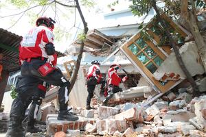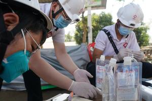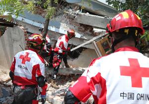 (250331) -- MANDALAY, 31 marzo, 2025 (Xinhua) -- Miembros del Equipo Internacional de Respuesta a Emergencias de la Cruz Roja...