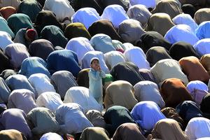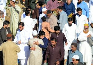 (250331) -- KARACHI, 31 marzo, 2025 (Xinhua) -- Personas se saludan después de las oraciones durante el Eid al-Fitr, que...