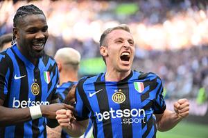 (250331) -- MILAN, 31 marzo, 2025 (Xinhua) -- Imagen del 30 de marzo de 2025 de Davide Frattesi (d), de...
