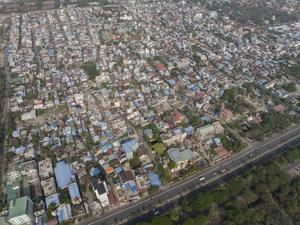 (250331) -- MANDALAY, 31 marzo, 2025 (Xinhua) -- Vista aérea tomada con un dron el 31 de marzo de 2025...