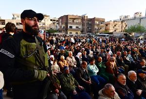 (250401) -- DAMASCO, 1 abril, 2025 (Xinhua) -- Imagen del 31 de marzo de 2025 de un guardia de seguridad...