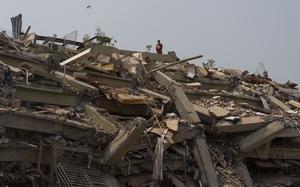 (250401) -- MANDALAY, 1 abril, 2025 (Xinhua) -- Imagen del 1 de abril de 2025 del puente Ava que colapsó...