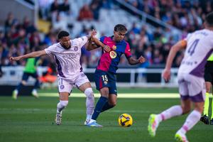 (250331) -- BARCELONA, 31 marzo, 2025 (Xinhua) -- Imagen del 30 de marzo de 2025 de Lamine Yamal (d), de...