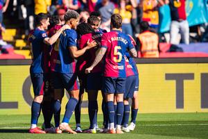 (250331) -- BARCELONA, 31 marzo, 2025 (Xinhua) -- Imagen del 30 de marzo de 2025 de jugadores de FC Barcelona...