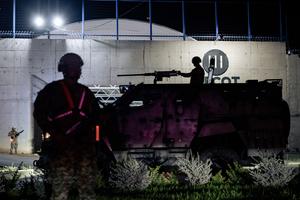 (250331) -- TECOLUCA, 31 marzo, 2025 (Xinhua) -- Imagen cedida por la Presidencia de El Salvador de militares vigilando frente...