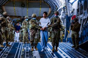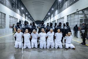 (250331) -- TECOLUCA, 31 marzo, 2025 (Xinhua) -- Imagen cedida por la Presidencia de El Salvador de presuntos miembros de...