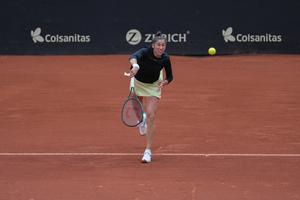 (250401) -- BOGOTA, 1 abril, 2025 (Xinhua) -- Imagen del 31 de marzo de 2025 de Sara Sorribes Tormo sirviendo...