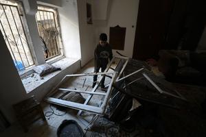 (250402) -- NAPLUSA, 2 abril, 2025 (Xinhua) -- Un niño palestino es visto en la vivienda del palestino Hamza Muhammad Saeed Khammash tras una incursión de las fuerzas israelíes, en la ciudad cisjordana de Naplusa, el 2 de abril de 2025. Las fuerzas israelíes dispararon y mataron a un palestino el miércoles en el casco antiguo de Naplusa, informó el Ministerio de Salud palestino. El Ministerio identificó al hombre como Hamza Muhammad Saeed Khammash, de 33 años de edad. (Xinhua/Nidal Eshtayeh) (jg) (da) (vf)