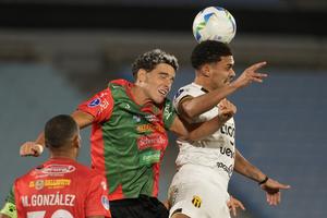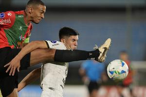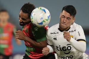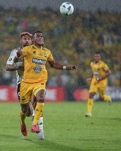 (250402) -- BUCARAMANGA, 2 abril, 2025 (Xinhua) -- Imagen del 1 de abril de 2025 del jugador Aldair Zárate (i),...