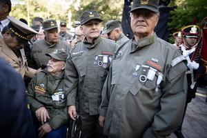 (250402) -- BUENOS AIRES, 2 abril, 2025 (Xinhua) -- Ex combatientes participan durante un acto realizado frente al Monumento a...