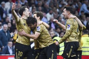 (250402) -- MADRID, 2 abril, 2025 (Xinhua) -- Imagen del 1 de abril de 2025 de jugadores de Real Sociedad...