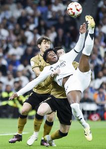 (250402) -- MADRID, 2 abril, 2025 (Xinhua) -- Imagen del 1 de abril de 2025 de Jude Bellingham (d), de...