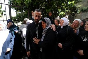 (250402) -- NAPLUSA, 2 abril, 2025 (Xinhua) -- Personas asisten al funeral del palestino Hamza Muhammad Saeed Khammash, en la...