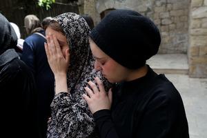 (250402) -- NAPLUSA, 2 abril, 2025 (Xinhua) -- Personas asisten al funeral del palestino Hamza Muhammad Saeed Khammash, en la...