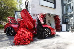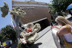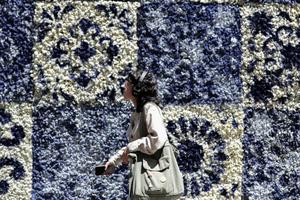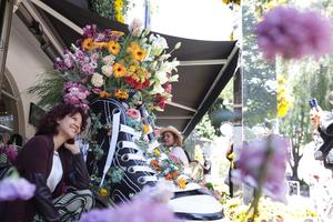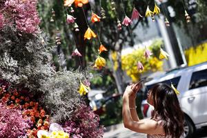 (250404) -- CIUDAD DE MEXICO, 4 abril, 2025 (Xinhua) -- Una mujer camina frente a una instalación decorada con flores...