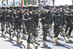 (250404) -- DAKAR, 4 abril, 2025 (Xinhua) -- Soldados senegaleses participan en un desfile militar, en Dakar, Senegal, el 4...