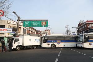 (250404) -- SEUL, 4 abril, 2025 (Xinhua) -- Vehículos de la policía son desplegados para bloquear las calles cerca del...