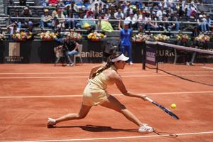 (250405) -- BOGOTA, 5 abril, 2025 (Xinhua) -- Camila Osorio devuelve la pelota durante el partido de semifinal de sencillos...