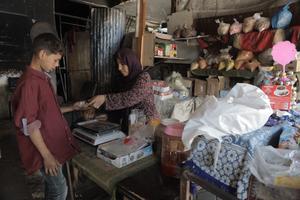 (250406) -- GAZA, 6 abril, 2025 (Xinhua) -- Imagen del 5 de abril de 2025 de palestinos desplazados vistos en...