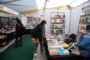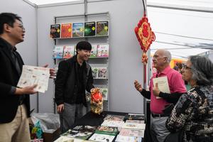 (250406) -- SANTIAGO, 6 abril, 2025 (Xinhua) -- Imagen del 5 de abril de 2025 de personas visitando estands durante...