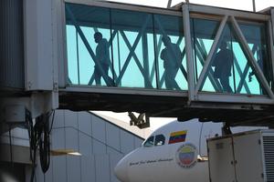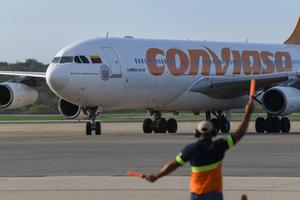 (250403) -- LA GUAIRA, 3 abril, 2025 (Xinhua) -- Un avión de la aerolínea estatal venezolana Conviasa, con migrantes venezolanos...