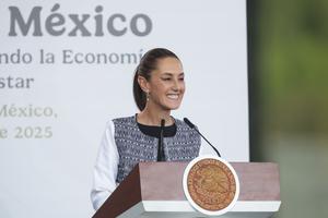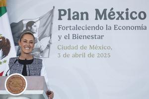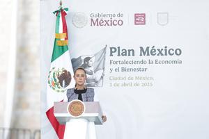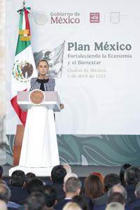 (250403) -- CIUDAD DE MEXICO, 3 abril, 2025 (Xinhua) -- La presidenta mexicana, Claudia Sheinbaum, habla durante el evento "Aceleramos...