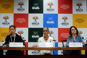 (250403) -- BRASILIA, 3 abril, 2025 (Xinhua) -- La ministra de Medio Ambiente y Cambio Climático brasileña, Marina Silva (c),...