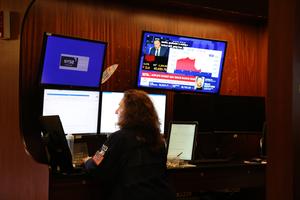 (250403) -- NUEVA YORK, 3 abril, 2025 (Xinhua) -- Un corredor de bolsa trabaja en el piso de la Bolsa...