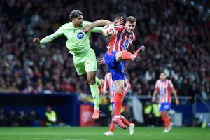 (250403) -- MADRID, 3 abril, 2025 (Xinhua) -- Imagen del 2 de abril de 2025 de Ronald Araujo (i), de...